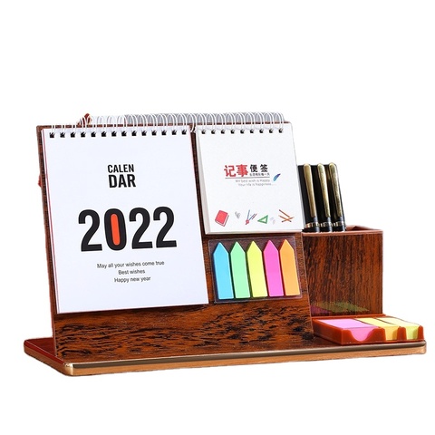Lịch để bàn gỗ tự làm phổ biến, có đồng hồ, chất liệu giấy, dùng cho văn phòng và trang trí nhà cửa
